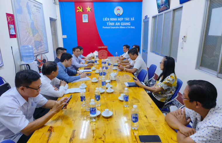 Trong 02 ngày (từ ngày 25/3 đến ngày 26/3/2025), Đoàn công tác Liên minh Hợp tác xã tỉnh Bắc Giang do đồng chí Nguyễn Đức Hiền – Chủ tịch Liên minh Hợp tác xã tỉnh và các thành viên đã đến học tập, trao đổi kinh nghiệm về kết nối giới thiệu, bán sản phẩm của HTX trên địa bàn tỉnh An Giang. Đồng chí Trần Văn Cứng – Ủy viên Ban Thường vụ Liên minh Hợp tác xã Việt Nam – Chủ tịch Liên minh Hợp tác xã tỉnh An Giang; đồng chí Phan Quốc Hội – Phó Chủ tịch Liên minh Hợp tác xã tỉnh; đồng chí Nguyễn Văn Thành – Phó Chủ tịch Liên minh Hợp tác xã tỉnh và lãnh đạo các phòng, ban chuyên môn Liên minh Hợp tác xã tỉnh An Giang tiếp và làm việc với đoàn.